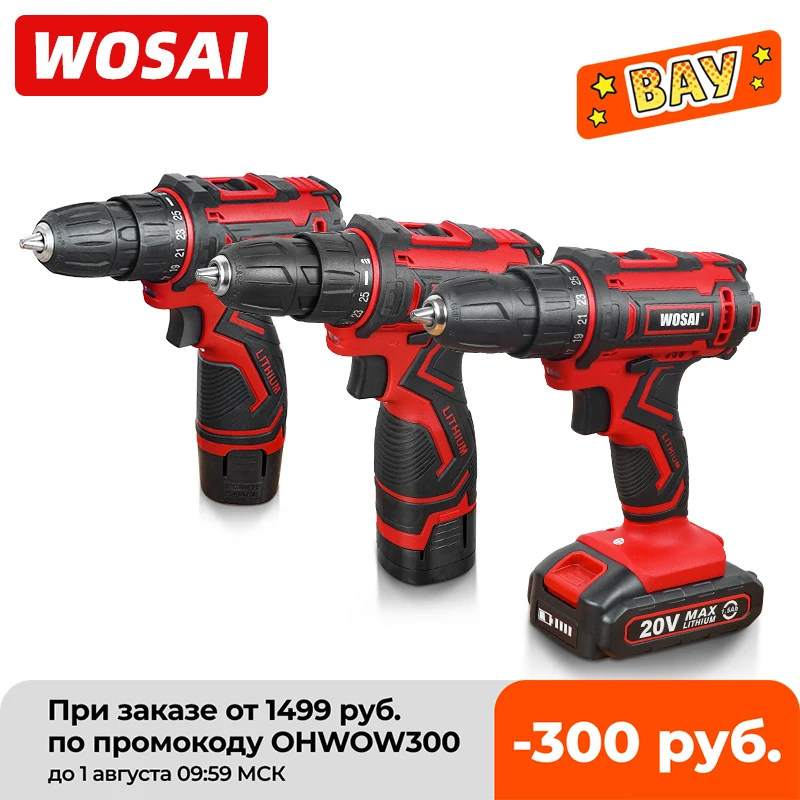 WOSAI 12V 16V 20V Cordless Drill Electric Screwdriver Mini Wireless Power Driver DC Lithium-Ion Battery 3/8-Inch