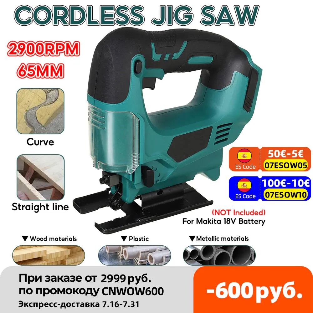 Drillpro 21V 65mm 2900RPM Cordless Jigsaw Electric Jig Saw Portable Multi-Function Woodworking Power Tool for Makita 18V Battery