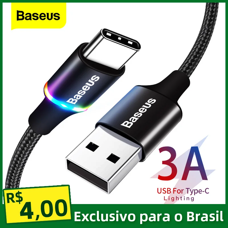 Baseus USB Type C Cable For Samsung S20 S21 Xiaomi POCO Fast Charging Wire Cord USB-C Charger Mobile Phone USBC Type-C Cable 3m
