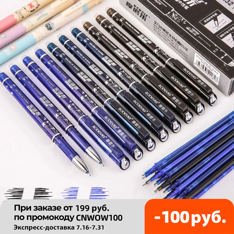 2+50Pcs/Set Blue Black Red Ink Erasable Pen 0.5mm Refills Gel Pens For Kids Girls Gifts School Office Supplies Stationery