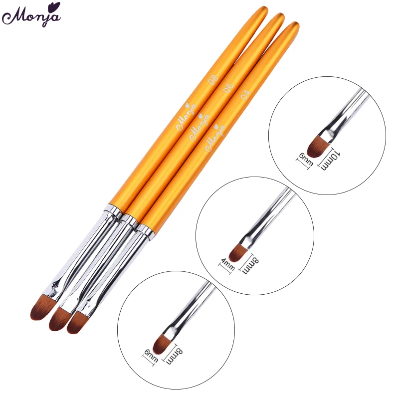 Monja 3pcs Nail Art Metal Handle Acrylic UV Gel Extension Builder Petal Flower Painting Drawing Brush Manicure Tools
