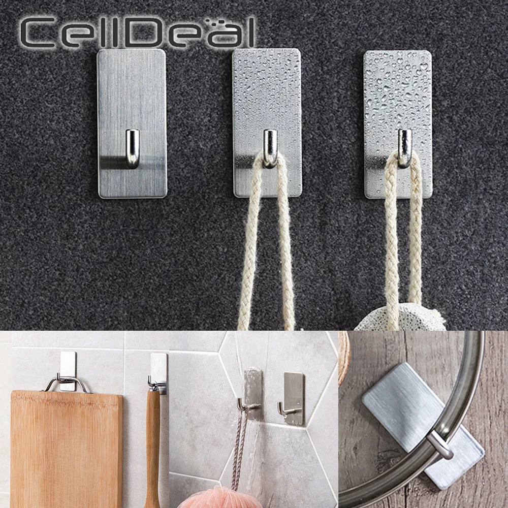 Stainless Steel Wall Hook Self Adhesive Sticky Kitchen Home Bathroom Key Bag Hanger Storage Hanging Holder Waterproof Towel Rack