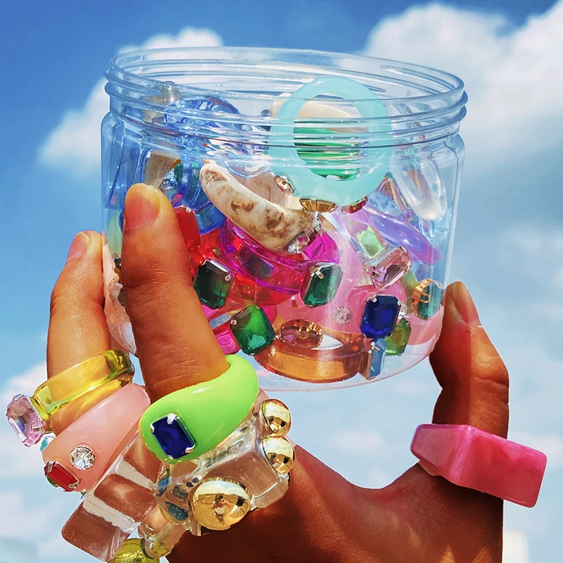 IF ME Ins Aesthetic Colorful Transparent Resin Acrylic Crystal Korean Geometric Irregular Square Rings for Women Trendy Jewelry
